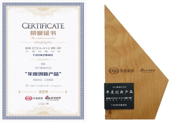 浙江博净电器有限公司(以下简称“博净”)在会议年度荣誉榜单揭晓环节中,荣膺“2021集成灶行业十大影响力品牌”,并率其产品博净T-9分体式集成灶喜获“2021年度创新产品”。
