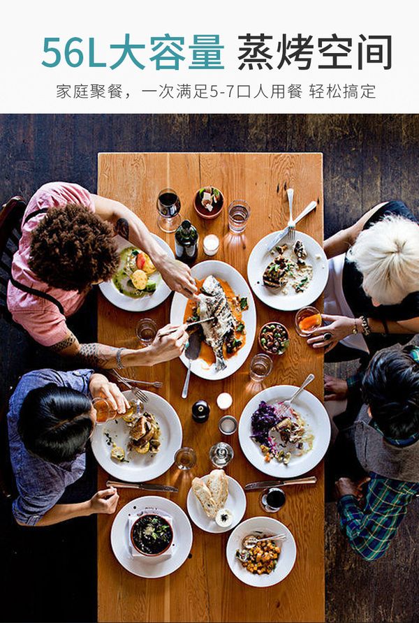 优格蒸烤一体集成灶拥有56L超大容量蒸烤箱,多层搁架,分隔多重美味。操作简单,只需将食材准备好,放入蒸烤箱,设置好时间温度,无需时时在厨房看着,和朋友的谈笑间静候美食的出炉,一次能做一桌菜。
