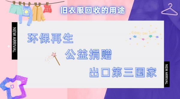 丢弃的旧衣服中,可以重新利用的比例很高。经过分拣、消毒处理,按衣服的材质来进行可循环生产,变成我们经常看到地毯、棉纱、还有汽车的隔音棉、空调所需的隔尘棉等。让我们的旧物得到充分的利用,也让更多需要帮助的人得到温暖与帮助!随即互联网上也兴起了很多旧衣服回收平台,让旧衣服得到合理地利用。