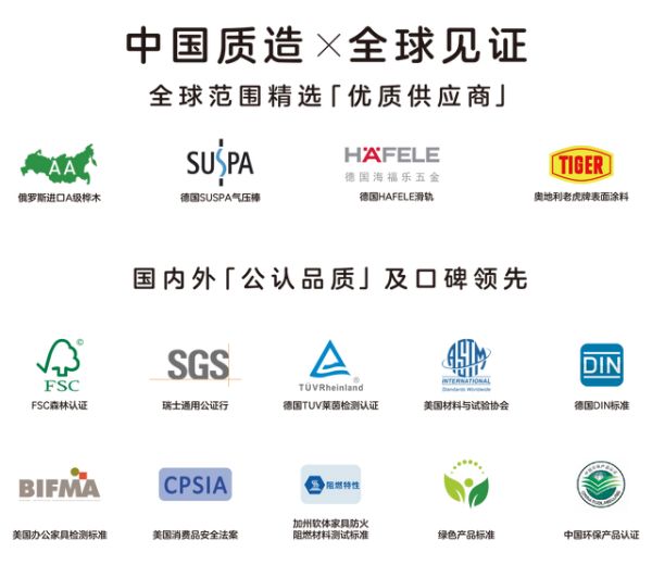 产品先后通过德国TÜV莱茵“China-mark”(中国标识)认证、中国环保产品认证、FSC森林体系认证、瑞士SGS等国内外30多项专业检测权威认证,真正达到了绿色环保高品质学习家具水准。