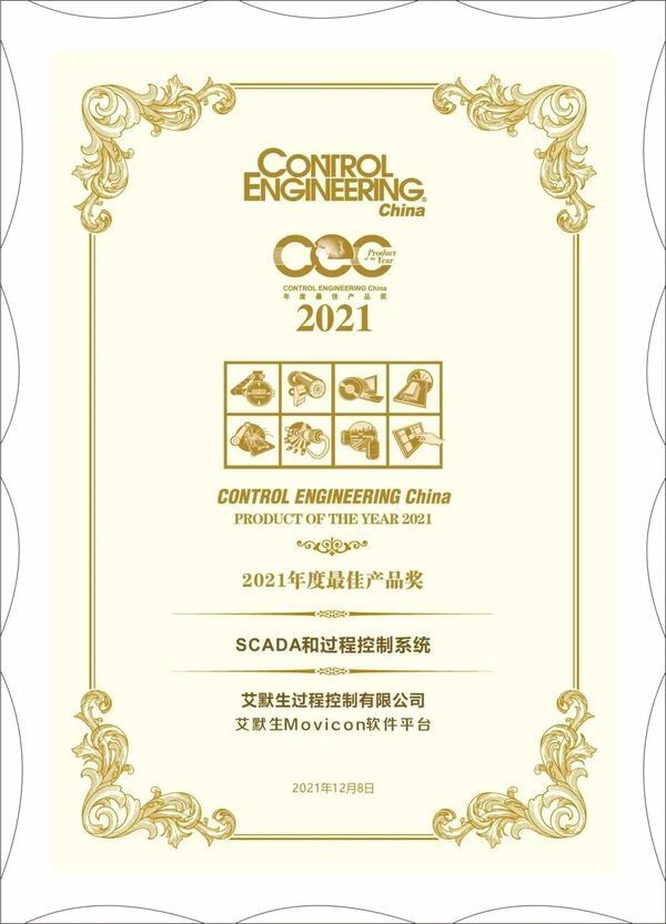 近日,中国工控自动化领域权威的年度产品评选活动 – CONTROL ENGINEERING CHINA(CEC)2021(第十七届)年度最佳产品奖颁奖礼在线隆重举行。此次艾默生Movicon软件平台凭借在技术创新性、落地的应用场景、用户友好性方面的优异表现,在“SCADA和过程控制系统”类别中脱颖而出,一举夺得 “CEC 2021最佳产品奖”!