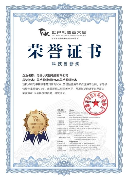 小天鹅羊毛柔烘技术获科技创新奖 民族品牌闪耀世界制造业大会