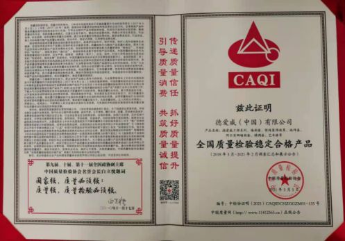本年3·15,德爱威斩获了由中国质量检验协会颁发的“全国消费者质量信誉保障产品”、“全国质量检验稳定合格产品”、“全国涂料行业质量领先品牌”、“全国涂料行业质量领先企业”、“全国产品和服务质量诚信示范企业”五项殊荣,证明德爱威产品质量和企业信誉始终受到行业和社会的认可。