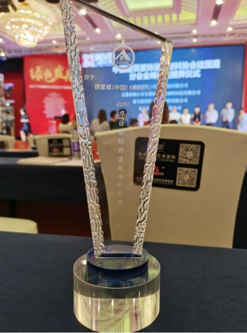 5月18日举办的第四届中国全装修家居产业峰会暨2021年全国涂料行业发展大会中,德爱威凭借硬实力在众多涂料品牌中脱颖而出,荣获“2020华涂奖环保建筑涂料品牌”。