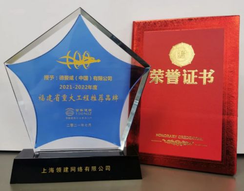5月27日,德爱威于“2021第五届中国·四川建筑行业交流会”上,获此“2021-2022年度四川省重大工程推荐品牌”殊荣。