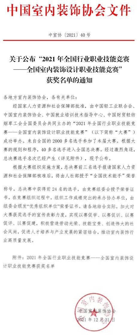 喜报|湖北设计师在“2021年全国行业职业技能大赛——全国室内装饰设计职业技能竞赛”