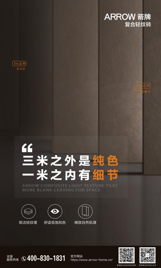 如今,建材陶瓷圈的似乎也不甘雌伏,加入了洗脑式广告的大军。箭牌复合轻纹砖的一句神广告“三米之外是纯色,一米之内有细节”,广泛流传于朋友圈和实体店,响彻整个陶业,让闻者耳目一新,因过目难忘而追捧不已,也引发行业人士、媒体界、广告圈人士持续关注和讨论。