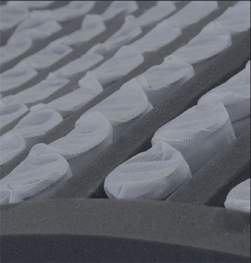 由独立袋装弹簧和弹力释压棉巧妙组合而成云矩阵专利弹簧,突破传统弹簧弹力只能线性传递的限制,由点及面,让床垫各部分轻松升降并且保持静音。