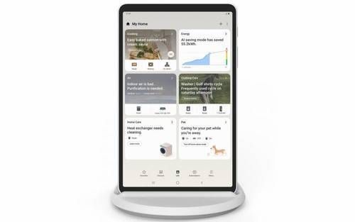 新浪家居智能家居频道讯 在 CES 2022 期间,三星推出 SmartThings 智能家居新品 Home Hub,这是一台智能家居中枢,不过造型更像一台平板电脑。三星介绍称,用户可以在平板上登录家里支持 SmartThings 生态的其他家电,同时也会兼容未来的 Matter 标准。