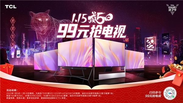 威5日是TCL独有的开年盛典,在往年的威5日活动中,玩法与力度从未令消费者失望过,特别是在各类福利与优惠上,TCL更是不遗余力,因此威5日作为TCL开年第一场狂欢盛宴非常令人期待的。今年,TCL威5日为我们带来了别开生面的玩法:99元抢电视!