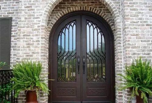 这是一款拱形的进户门,给人一种复古典雅的视觉感。而门上优质的五金把手,精湛的雕刻工艺,进口红木定制,都能彰显出主人的地位和品质。