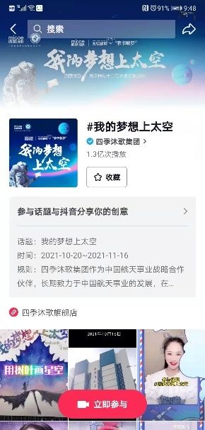 本次四季沐歌通过线上线下双渠道进行梦想征集,参与者的梦想可以通过“天地通信”技术传输至太空,登上天宫空间站,并且有机会获得航天员亲笔签名的明信片。