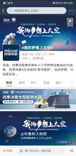 温暖又善良的梦想之声,在祖国各地响起,四季沐歌也将携手中国航天,让梦想在太空中生根发芽。本次征集活动不仅向大众科普航天知识,传播航天文化,同时还激发了人们的航天热情,为人民开启航天梦想,对中国航天文化的普及与传播起到非常关键的作用。