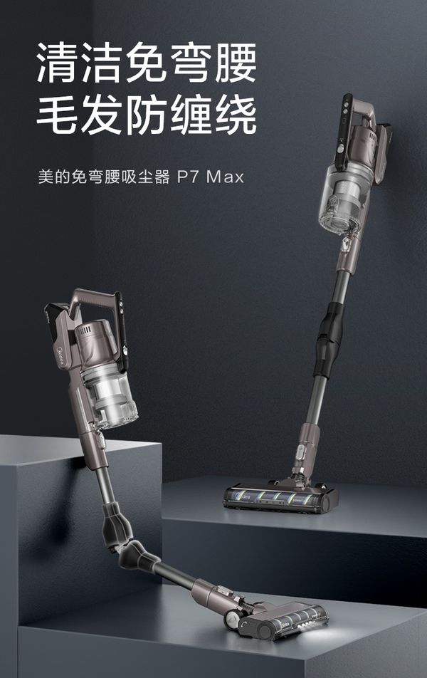 美的P7 MAX机身采用人体工学弯折设计,不用弯腰即可打扫低矮空间,避免频繁蹲起,减轻清洁负担。吸力方面,它的最大功率150AW,三挡吸力自动调节,持久模式下续航可达70分钟。它采用可拆卸电池设计,充电方便;配备电动除螨刷、尼龙刷头、长扁吸嘴、二合一毛刷、电动软绒刷等多种刷头,适用于多种清洁场景。