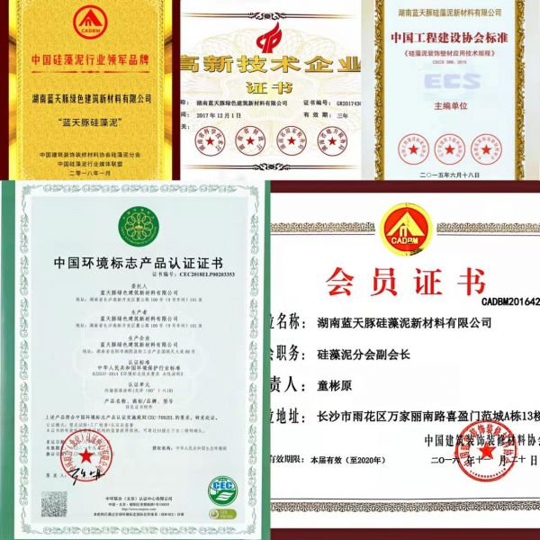 凭借其过硬的技术质量、持续的创新能力,蓝天豚先后荣获“国家高新技术企业、硅藻泥行业领军品牌、硅藻泥行业科技创新品牌、中国硅藻产业示范基地、中国硅藻产品技术质量标准制定基地、中国绿色建材硅藻新材料研发生产基地、中国建材网10大品牌等众多荣誉。
