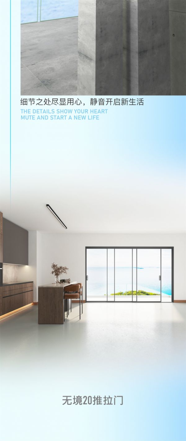 极简的外观看似简单,内置却蕴藏着意博门窗多年来深耕的技术创新,在愈发同质化的行业背景下,五花八门的推拉门品类中,无境20推拉门系列无疑是最为璀璨的明星,闪耀光芒下,将继续点亮意博门窗未来的星辰大海!