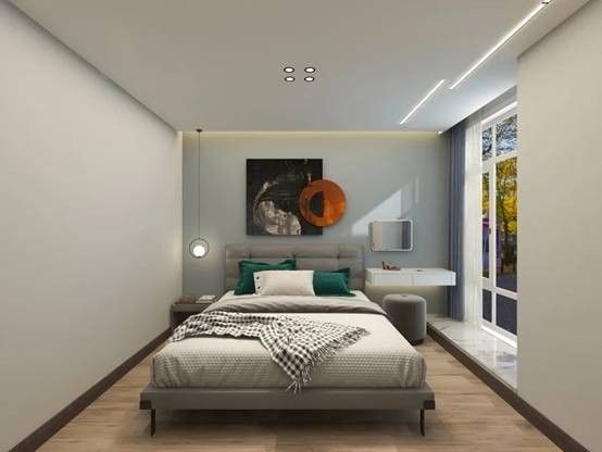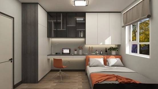 对于一个家而言,设计是灵魂,为了重塑两个卧室空间,设计师打破原有房间空间布局,主卧原有衣帽间尺寸过小,设计师采取改门洞开启方向的形式来实现转角衣柜的布局。一米八大床,单侧床头柜,靠窗侧窗台比较长,把梳妆台延伸一部分到窗台上。次卧考虑前期做客房及储物间使用,后期给小朋友居住,做定制床加定制书桌家具的形式。