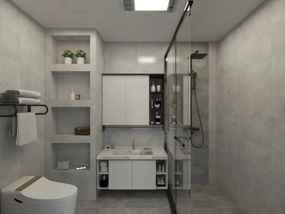 时尚永远是个轮回。黑白灰的艺术价值却不会因为时间而消失,相反,在现代家居中,被广泛应用。设计师在卫生间设计中,采用玻璃材质根据不同功能区,进行干湿分离,增加空间使用率的同时,也减少地面湿滑的现象,在视觉上整个空间更加宽阔。