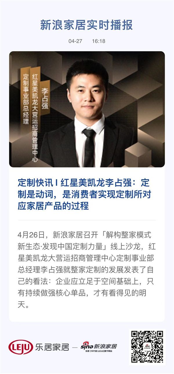 定制快讯 | 红星美凯龙李占强:定制是动词,是消费者实现定制所对应家居产品的过程
