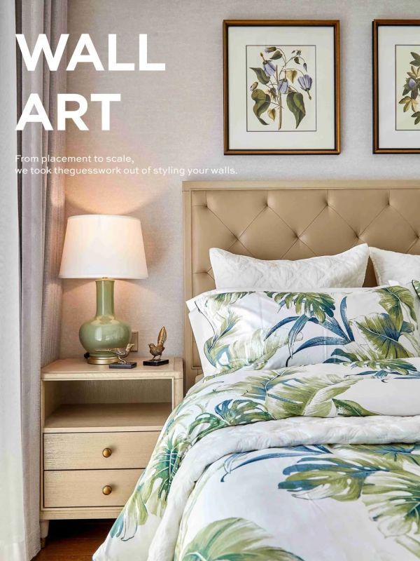 这是进入卧室的视线聚焦之处,可以和床品统一风格,同时定期更换,切换美好生活的心情 ~不过要注意“上墙方式”,避免不牢固的方式。