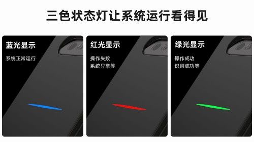 3D人脸识别 该款产品采用全新三代人脸模组,达到支付级3D人脸防伪,误识率在百万分之一以下,无惧照片、动态视频等造假手段,并且自带红外夜视识别功能,无论在强光、逆光,或身处黑暗的环境,都可精准识别人脸信息。