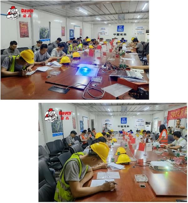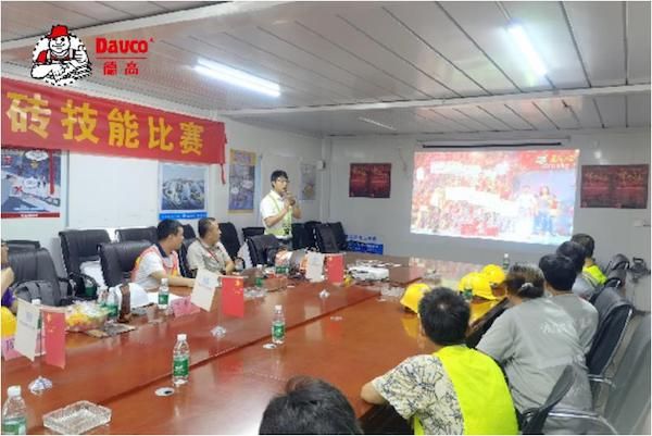 随后,中国陶瓷工业协会瓷砖粘贴技术专业委员会副会长单位高级培训讲师,德高全国工程发展事业部产品技术应用总监丁天华展开了以“攻克瓷砖空鼓,缔造精品工程”为主题的工艺培训,针对瓷砖铺贴空鼓的原因做了详细分析和提出了相应解决方案,并对接下来“最美工匠”贴砖比赛的规则做了详细介绍。培训结束后,师傅们立即全力以赴投入到贴砖技能理论考试中。