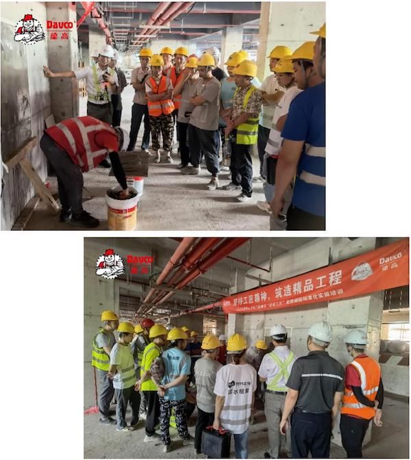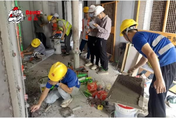 理论考试结束后,德高工程师对参赛师傅展开瓷砖铺贴标准施工工艺实操培训。德高坚持厂商一体化,致力于推广薄贴工艺,通过管理要点讲解及薄贴工艺实操演示,认真细致地向施工师傅推广普及产品施工标准工艺。