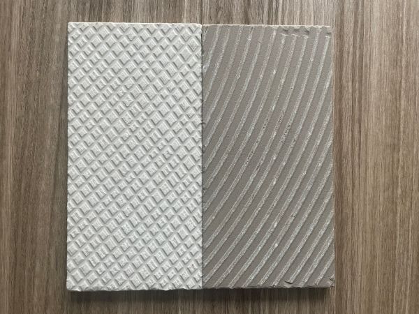 55°白岩板坯(左)与普通瓷砖坯底对比
