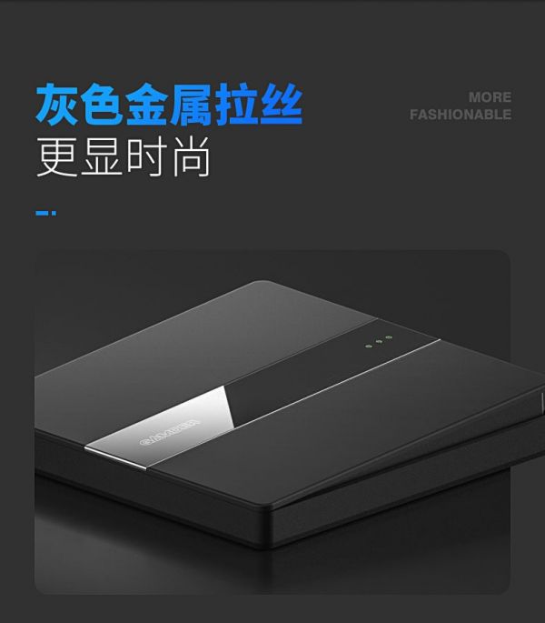陶瓷黑,是低调而浓郁的配色,比纯粹的黑更有格调,常被应用在汽车、手机等产品设计上。多道烤漆工艺处理开关表层,陶瓷黑漆面附着力强。它更有光泽,显得冷酷而又稳重,质感更加细腻。