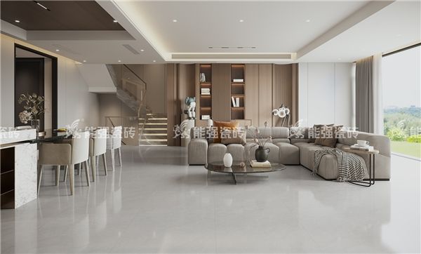 浅灰砖面上淡淡泛白的纹理随意飘零,与浅灰的底色浑然一体,自然写意,灵动洒脱,彰显轻盈透润的质感,让质感空间更显低调奢华。