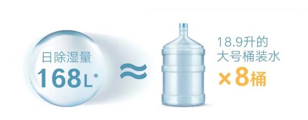*测试条件71型,27摄氏度60%RH,清爽模式下高风量档位,测得24小时连续开启除湿量:168L/D。