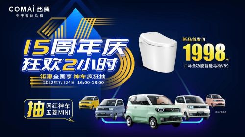 西马智能马桶15周年庆,狂欢两小时,就在西马直播间(视频号搜索西马智能马桶)2022年7月24日16:00-18:00