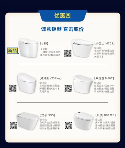 当然,除了新品外,更多爆款机型,也是钜惠到底,就在当地的西马智能马桶专卖店,快来看看吧。