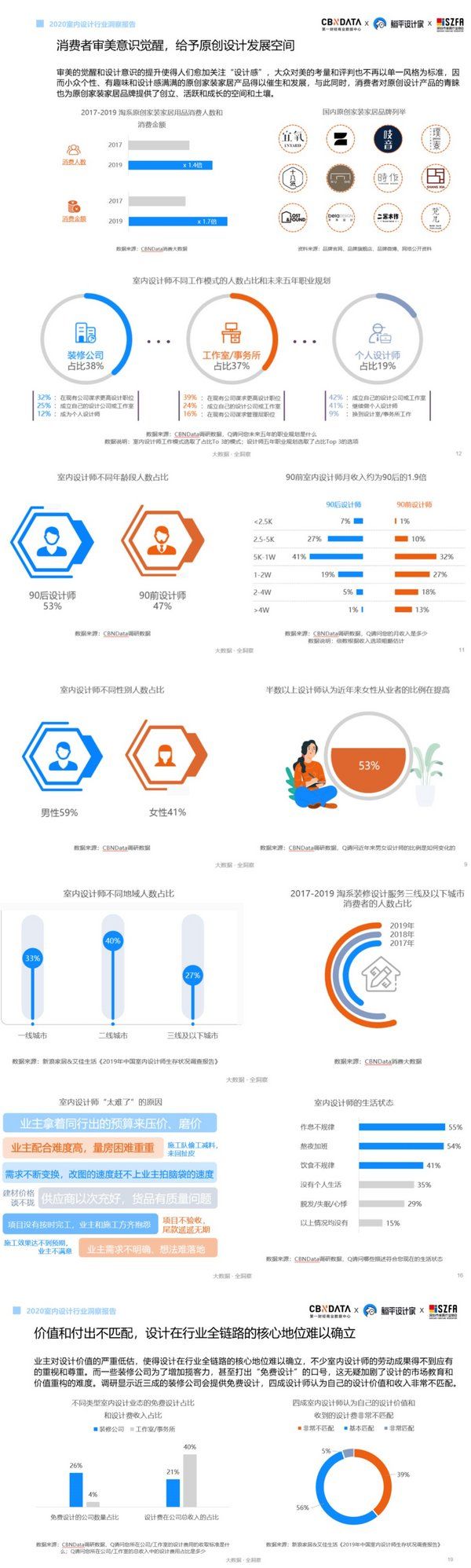 原创家装家居品牌的兴起顺利推动了室内设计师们的“C”位出道,以 90后和 95后为代表的青年设计师成为了室内设计行业的重要组成力量。CBNData《报告》显示,90 后设计师已经在整个行业中的占比达到 53%。