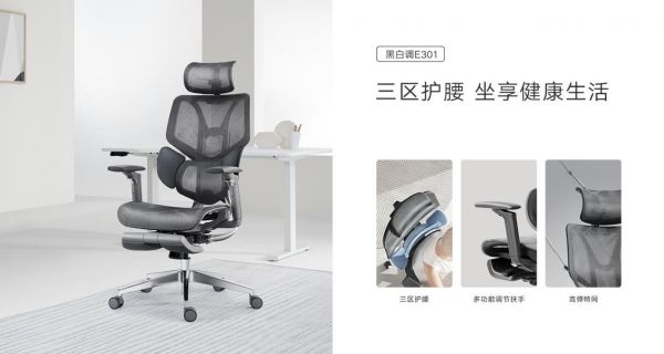 黑白调E3系列是定位在专业护腰层次上的人体工学椅。