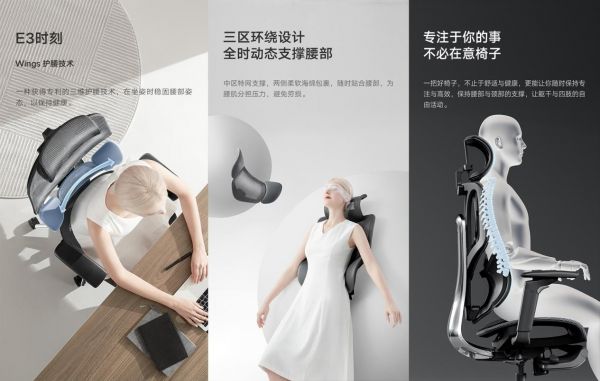 E3满足了身高、体型不一样的各类人群对于工学健康的需求,有效协调人体坐姿健康