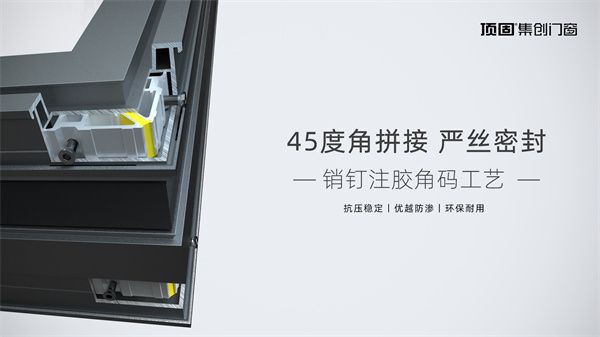 采用销钉注胶角码工艺,与传统活动角码相比,角部连接更牢固,提高50%的整窗稳定性,可抵御12级以上强台风,无惧风雨,安全性更高。