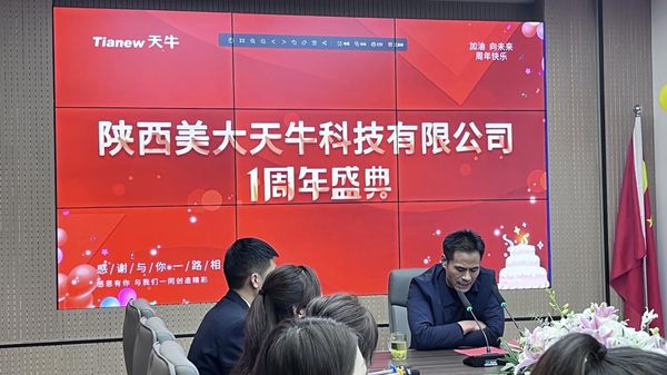 时光荏苒,转眼一年过去,陕西美大天牛科技有限公司从无到有、每一位天牛成员从陌生到熟悉,从熟悉到担当,每一阶段的拼搏进取,都为陕西天牛时代的到来打下坚实的基础。当天牛的日历翻过一周年那一页的时候,回首过往,无限的自豪和骄傲,展望未来,无限期许。西北大区、陕西省区的领导对天牛人的成绩给与肯定和赞许,送上了“天牛会越来越好的”的美好祝愿。陕西美大天牛科技有限公司创始人、股东发表致辞。