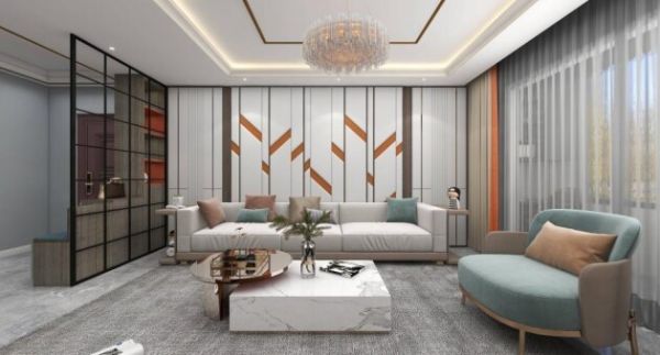 富有纹理的造型背景墙,凸显出空间的灵动。时尚的灯饰造型与背景墙相辅相成,勾出简洁的设计风格。有屋智能以素雅时尚的配色,让轻奢气质在空间流连辗转。