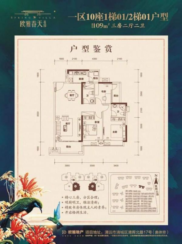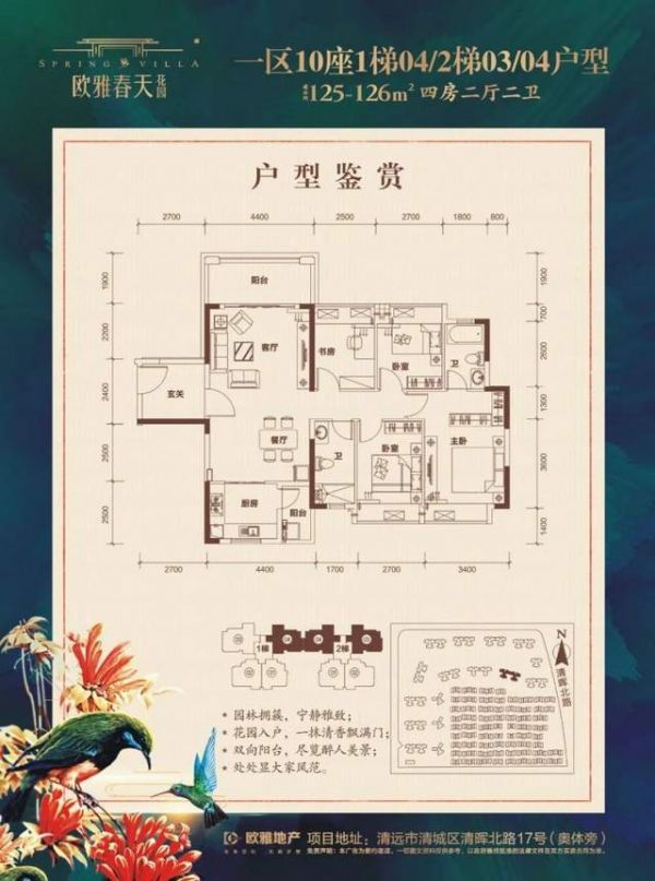 欧雅春天花园在售95㎡3房、106㎡3房,111㎡3房、127㎡4房、128㎡4房共5个户型,2梯4户、32层高,预计交楼时间为2023年6月30日。