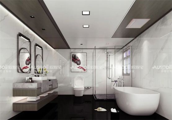 卫生间光线差。在装修时首先要注意最好不用沉闷的色调,选择浅色系列瓷砖作为空间主色调,即便是暗卫也看起来不会暗淡,让整个空间有呼吸感,顶墙一体化让空间更显大,欧斯宝集成吊顶高颜值,款式花色繁多,防潮防水,适用于卫生间装修。