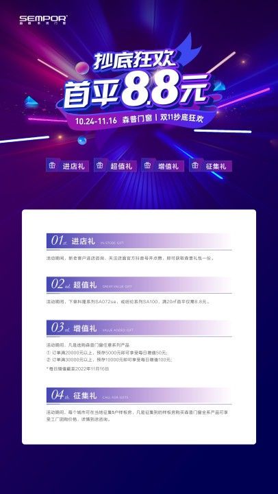 不同的人群对同类型产品的需求也不一样,有不少品牌为用户量身定制方案。比如森普系统门窗,作为口碑之上的高端系统门窗品牌,集体感与观感于一体。10.24—11.16森普门窗 | 双11抄底狂欢,首平8.8元,感兴趣的朋友,有必要了解下!