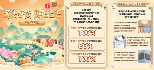 本次活动聚焦的产业带分别是:中山灯饰产业带、王店浴霸产业带、乐清开关产业带,深入挖掘产业带发展历程,展现产业带发展故事,提高用户对国内优秀家装产业带的认知。同时,也将产业带优秀品牌带入用户视野:大观园、科狮龙、国际电工,这些优秀品牌的发展进一步推动着产业带的升级,促进着国内家装行业的发展与进步。