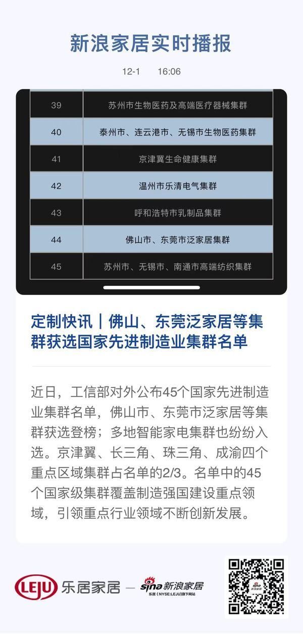 定制快讯|佛山、东莞泛家居等集群获选国家先进制造业集群名单