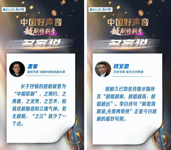第五期节目播出后,不仅引发网友的新一轮热议,还收获了更多业界名家的赞誉。著名作家、中国作家协会副主席麦家评价道:“长于抒情的越剧被誉为‘中国歌剧’,之婉约,之典雅,之灵秀,之艺术,极具戏剧魅惑和江南气神。若无越剧,‘之江’就少了一个点。”麦家的点评点出了越剧核心的神韵,也点出了越剧传世的重要意义。