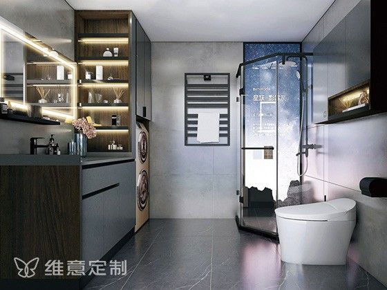 隐藏式洗衣机、折叠熨衣板,劲省空间;一键触摸式智能照明,肤色还原度高。