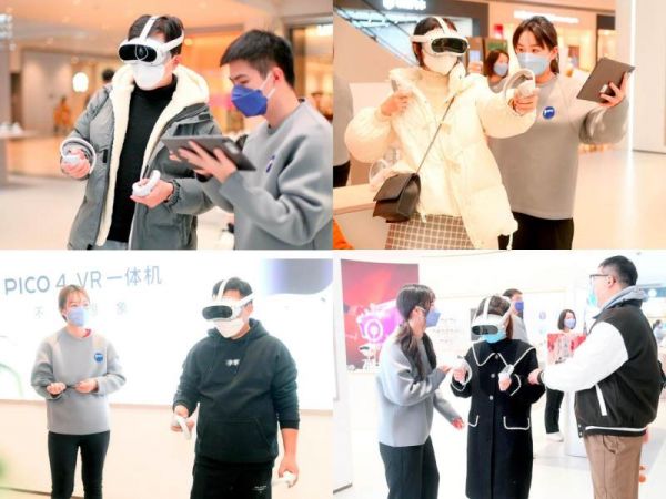 随着VR行业热度攀升,市场规模逐渐扩大,越来越多的用户参与到虚拟现实体验中来。自2022年9月发布PICO 4 VR 一体机以来,PICO除了持续加强技术研发、丰富内容生态外,还加速推进线下体验店布局,在北京、上海、深圳、成都、重庆、武汉等城市陆续开设了线下体验店,力求让更多用户近距离感受VR的魅力,探索沉浸、交互的VR世界。