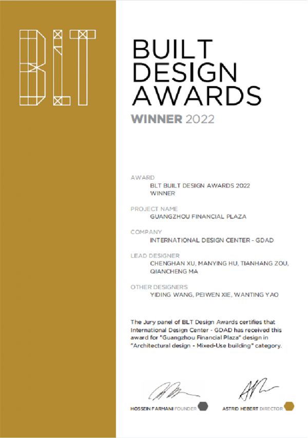 岁序更新前,华章奏响。2022国际知名大奖陆续揭晓获奖名单,其中IDC國際設計中心(广东省建筑设计研究院有限公司) (International Design Center-GDAD)以广州国际金融城站综合交通枢纽项目(Guangzhou Financial Plaza),凭借“锦鲤馔玉” 极具特色的理念以及作品深度,于全球众多优秀参赛设计中脱颖而出,获双项世i界级嘉奖认可:2022年瑞士BLT 建筑设计奖以及2022年美国 TITAN地产奖铂金奖。