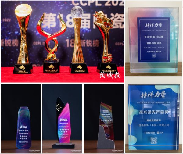 年初,道格拉斯便获得了“全国质量检验稳定合格产品”、“全国质量信誉保障产品”、“全国产品和服务质量诚信领先品牌”、“全国瓷砖行业质量领先企业”、“全国瓷砖行业质量领先品牌”和“全国产品和服务质量诚信示范企业”六项国家级质量认证。随后,道格拉斯不断地获得行业的嘉许,包括新锐榜“影响力品牌金奖”、“产品力领先企业”、“年度产品优秀奖(数码釉—简素时光系列)”、“荣获岩板金奖(1200*2600*9mm原素系列)”;《榜样力量》腾讯家居|贝壳·瓷砖品牌盛典“年度影响力品牌”、“技术领先产品奖”;陶瓷行业年度榜单“十大陶瓷品牌”及“年度消费者首选陶瓷品牌”;中国意大利陶瓷设计大赛“创意优秀奖(意尚瓷砖-恒久系列)”等多个奖项。