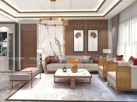相比于旧式的沉重,新中式的设计更注重线条的简化。空间之中抽象与具体的元素,以利落的线条语言勾画出现代的艺术,现代简约与古典工艺的碰撞,格调感跃然而出。